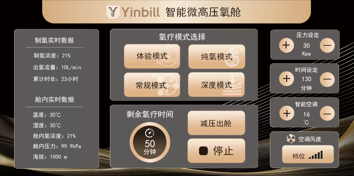 系统实时监测舱内压力、氧浓度、温度等关键参数,异常情况自动报警、自动调节。用户无需手动操作,设备自己会“照顾”自己。